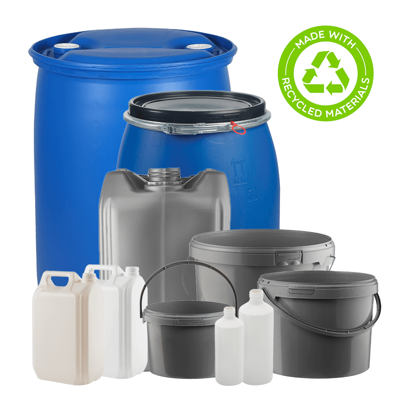 We are committed to sustainable packaging solutions and offer recycled plastic containers including buckets, bottles, jerry cans, barrels & IBCs.