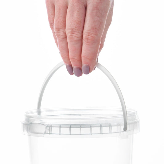 1 Litre Plastic Clear Tamper Evident Bucket with Plastic Handle and Lid