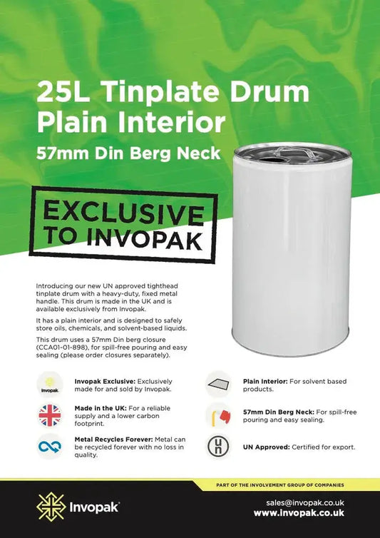 Invopak's metal containers are manufactured from some of the leading tinplate, aluminium and steel specialists in Europe. Our metal containers are suitable for a vast number of industrial and business applications. Our range of metal containers includes...