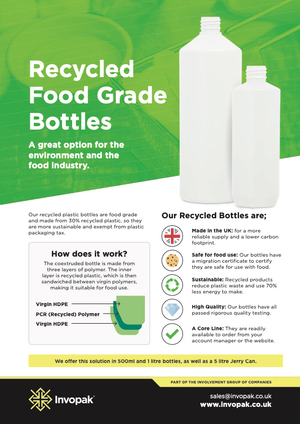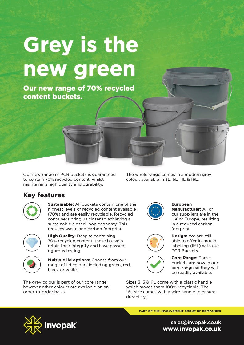 For the container to maintain its integrity & performance, it has to have the right blend of PCR and virgin material, which is why the threshold is 30%. At Invopak we are increasing our PCR range as more products come to market, including a new PCR bucket range, as well as a wider variety of Jerry cans and HDPE bottles.
