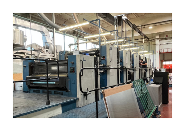 The flat tinplate blank is pressed into contact with the blanket by the impression cylinder. Transferring the image from the blanket to the metal sheet.