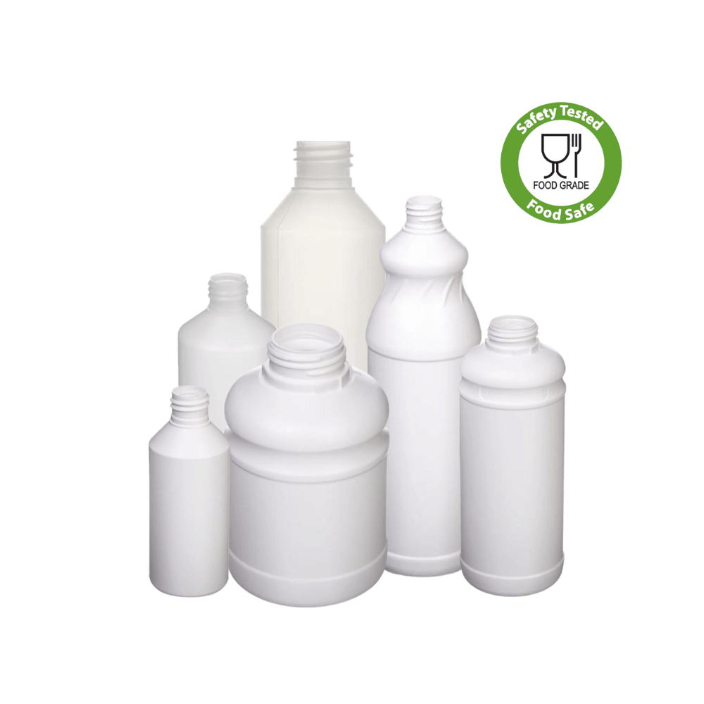 Our plastic bottle range includes standard HDPE (High-Density Polyethylene) bottles as well as recycled plastic bottles. HDPE bottles are durable, lightweight, and food-grade certified, so they are suitable for packaging sauces, dressings, shampoos, and sanitisers. Our PCR bottles, made from recycled plastics, are part of our sustainable packaging solutions and are also food-grade due to their layered construction, making them suitable for food, beverages, non-hazardous chemicals, paints, oils, adhesives, detergents, and cosmetics. All bottles are 100% recyclable, available in sizes from 50ml to 1L, and are suitable for use with various closures including screw caps, pump dispensers, and trigger sprays.